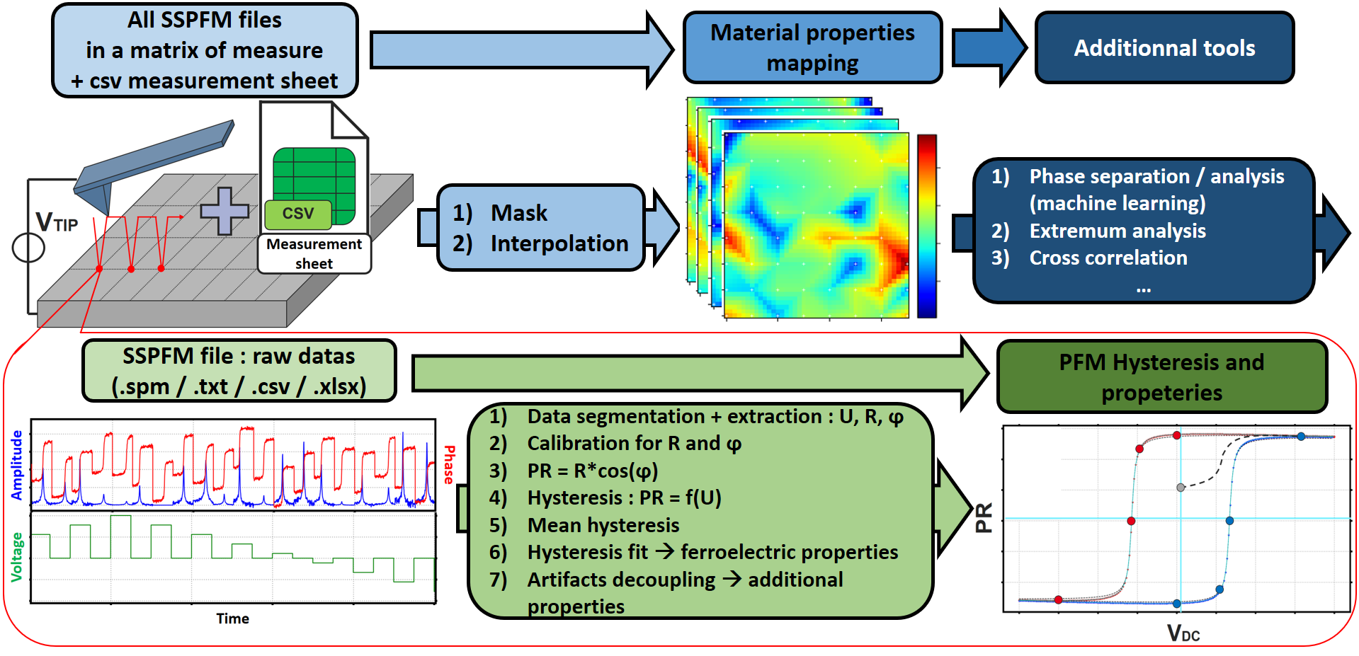 • PySSPFM has been developed with the aim of achieving the most quantitative and advanced measurement processing compared to other existing solutions.