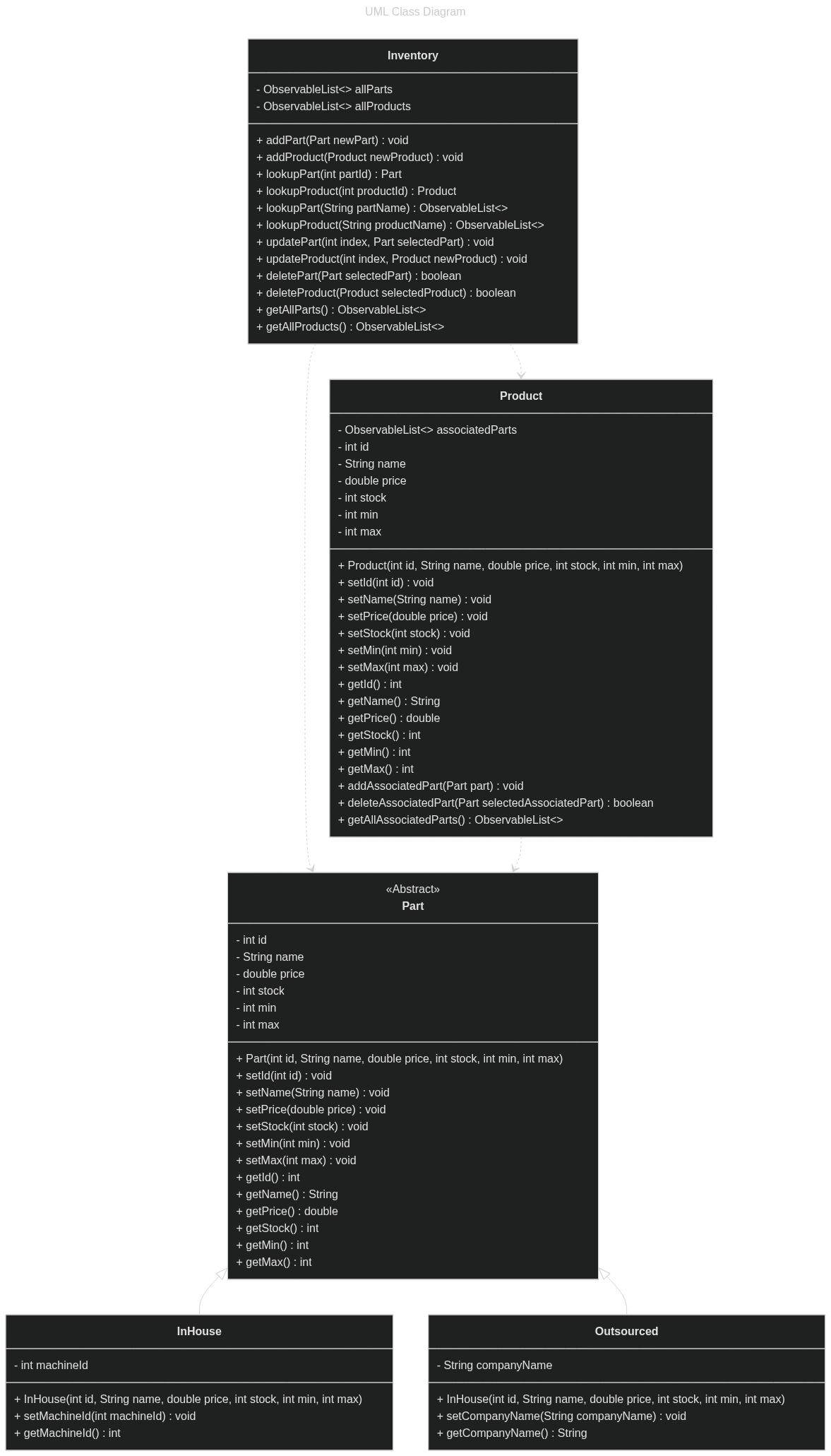 This project is a Java-based desktop application developed for a small manufacturing organization (Acme) to manage their inventory system. The application replaces the manual process of using spreadsheets for inventory management, allowing for more sophisticated and automated inventory tracking. The system was designed and implemented to meet specific business requirements, incorporating various object-oriented principles and Java programming constructs.